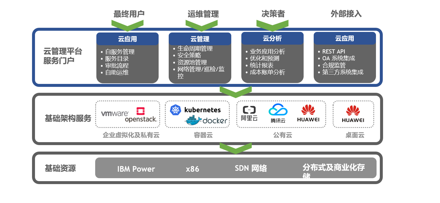 提供虚拟化、私有云、容器云、公有云的多云对接能力