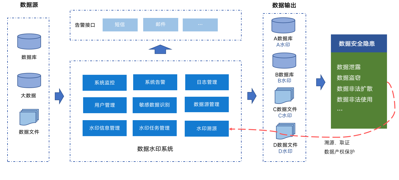 如出现数据泄露可通过泄露数据样本进行溯源追责,包括数据分发对象 、分发单位 、分发时间等信息 ,实现数据泄露后的溯源追责,降低数据使用的安全隐患,提高对数据安全管理意识。